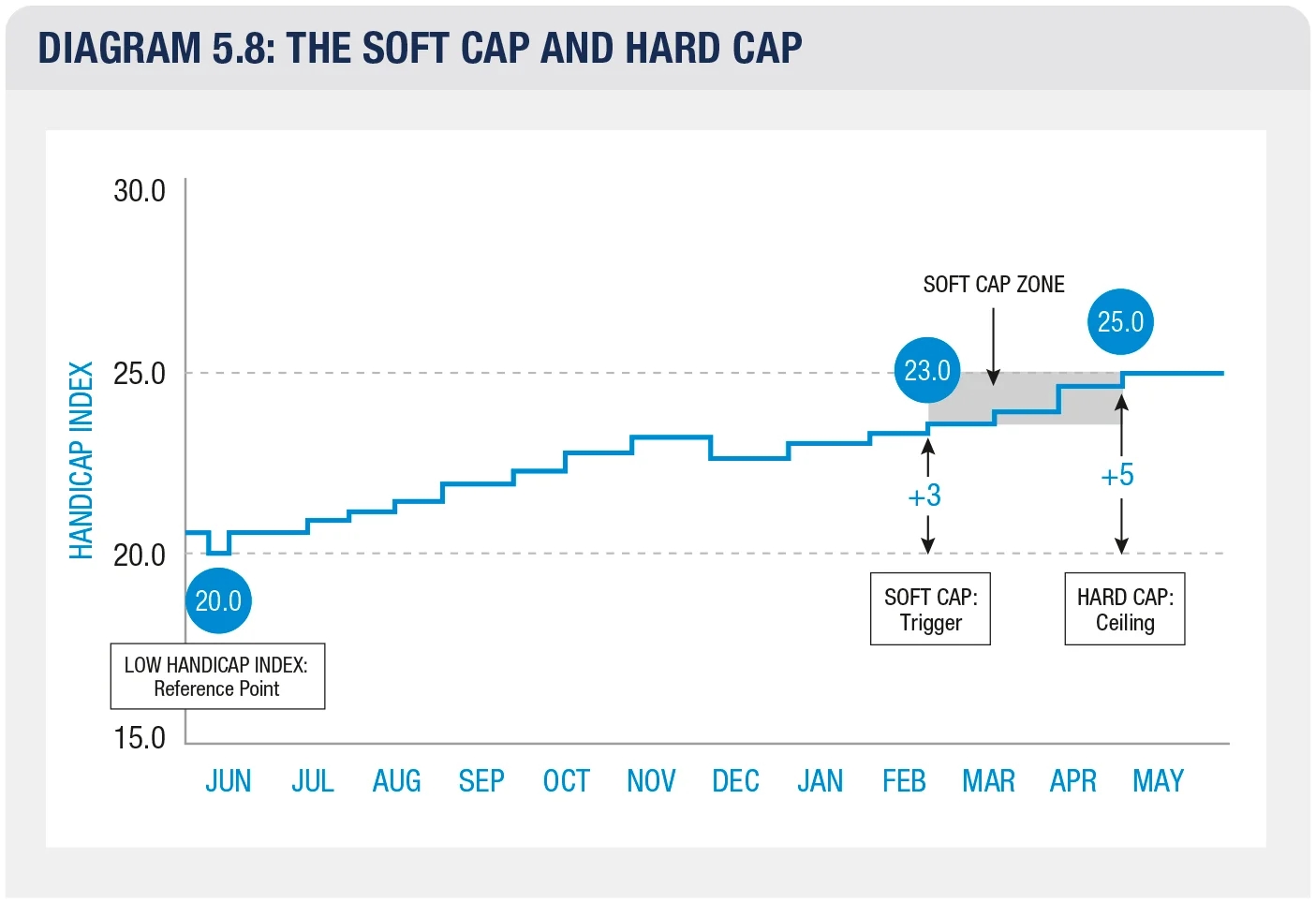 Handicap Index của Golfer vẫn được tính dựa vào 8 trận tốt nhất trong 20 trận gần nhất của họ, tuy nhiên, trong trường hợp Handicap Index tạm tính vượt quá cao so với Low Handicap Index, hệ thống sẽ áp dụng Soft Cap và Hard Cap để kiểm soát việc tăng, giảm Handicap Index của người chơi.